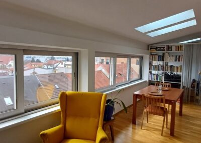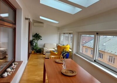 Byt bol kompletne zrekonštruovaný pred 10 rokmi vrátane rozvodov, okien, podláh, zastrešenia a presklenia terasy.