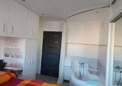 Dispozične pozostáva zo vstupnej chodby, kuchyne spojenej s obývačkou, z ktorej je východ na lodžiu, spálne so vstavanými skriňami, v ktorej je umiestnená aj vaňa, dvoch izieb a kúpeľne so sprchovacím kútom spojenej s WC.