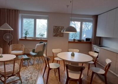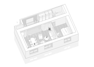 - Pozostáva zo vstupnej chodby, kuchyne spojenej s obývačkou, spajze, spálne a kúpeľne spojenej s WC.