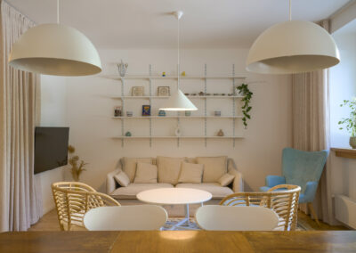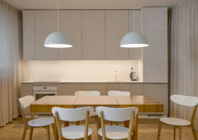 - Byt sa nachádza na vyvýšenom prízemí, je po kompletnej rekonštrukcii, kompletne zariadený, vybavený potrebnými elektrospotrebičmi, ako je chladnička, sklokeramická doska, teplovzdušná rúra, umývačka riadu, práčka a sušička, mikrovlnná rúra, rýchlovarná kanvica.