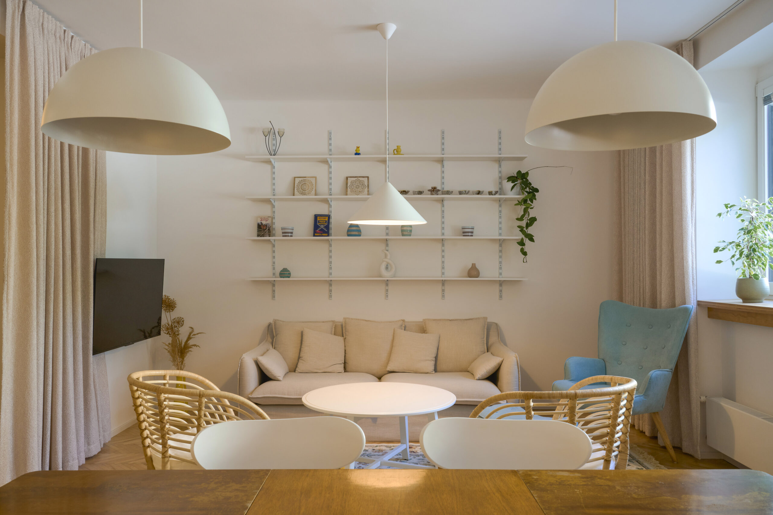 - Byt sa nachádza na vyvýšenom prízemí, je po kompletnej rekonštrukcii, kompletne zariadený, vybavený potrebnými elektrospotrebičmi, ako je chladnička, sklokeramická doska, teplovzdušná rúra, umývačka riadu, práčka a sušička, mikrovlnná rúra, rýchlovarná kanvica.