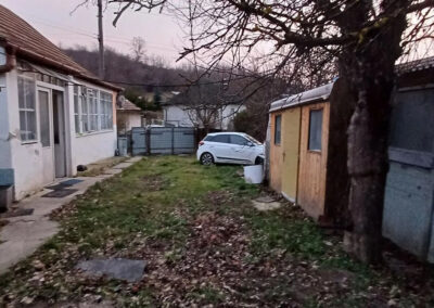 Dom je napojený na elektriku a vodu zo studne.